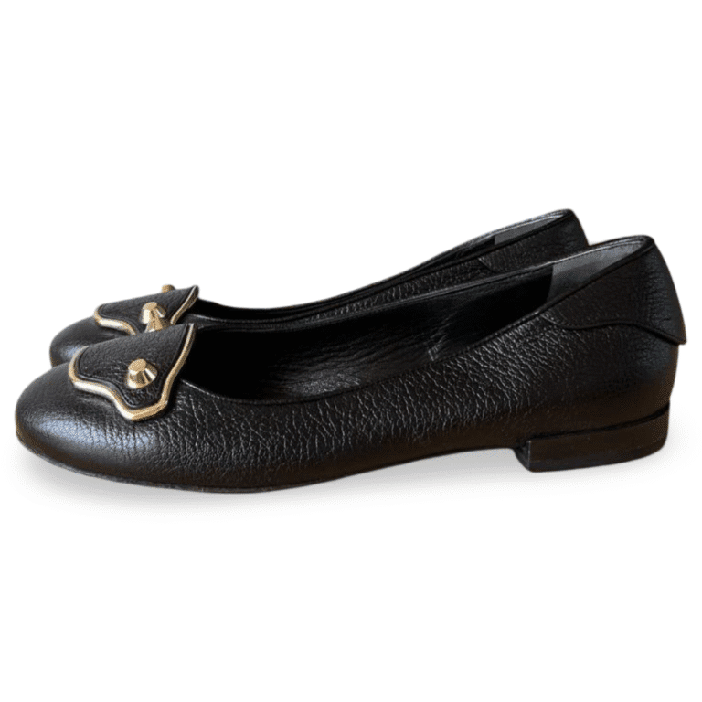 Balenciaga Black Leather Embellished Ballerina Flats – Size 36.5