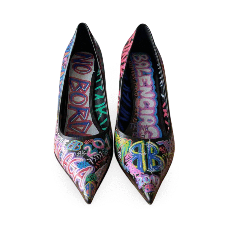 Balenciaga Black Leather Graffiti Print Pointed Toe Pumps – Size 36