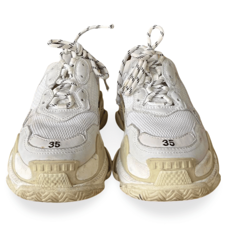 Balenciaga Off White Leather and Mesh Race Runner Sneakers