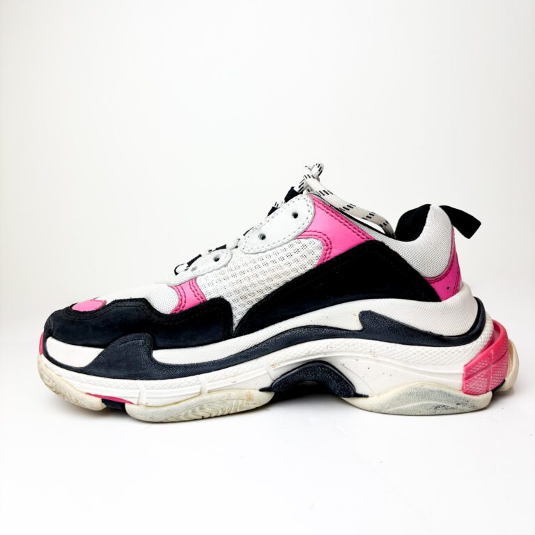 Balenciaga Triple S Sneakers in Neon Pink, White, and Black Mesh & Leather — Size 39
