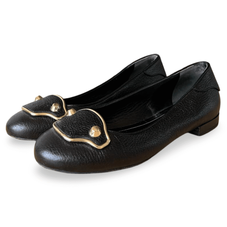 Balenciaga Black Leather Embellished Ballerina Flats – Size 36.5