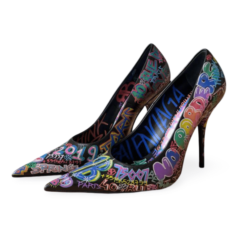 Balenciaga Black Leather Graffiti Print Pointed Toe Pumps – Size 36