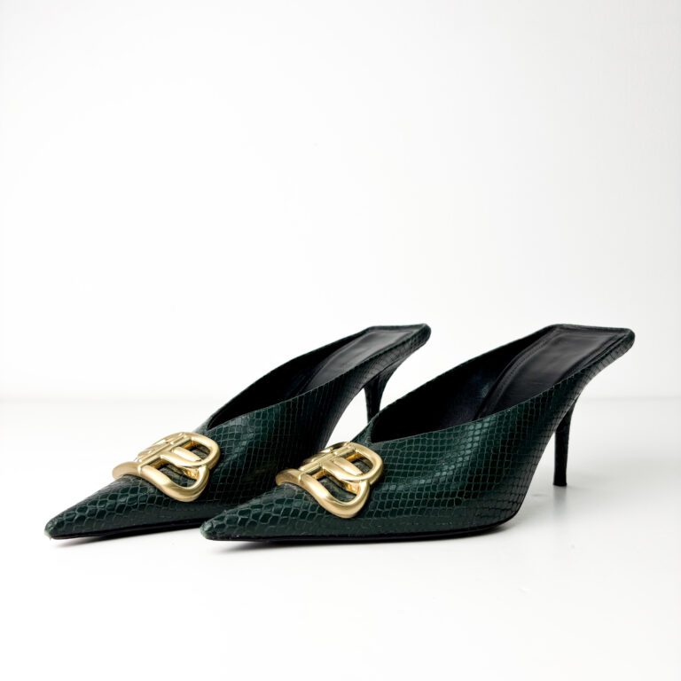 Balenciaga Square Knife BB 80mm Mules in Green Python-Embossed Leather — Size 37