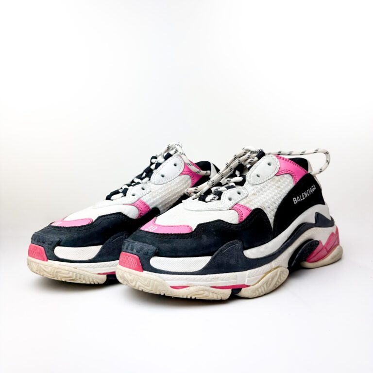 Balenciaga Triple S Sneakers in Neon Pink, White, and Black Mesh & Leather — Size 39