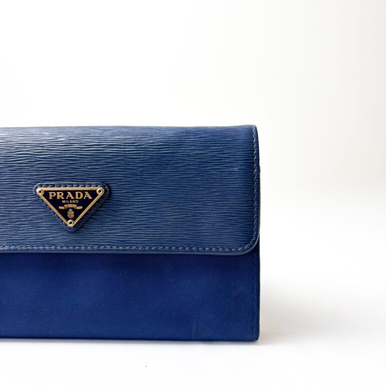 Crafted in Prada’s signature Saffiano leather in bluette, the Portafoglio Tracolla combines timeless elegance with practical functionality. It features a