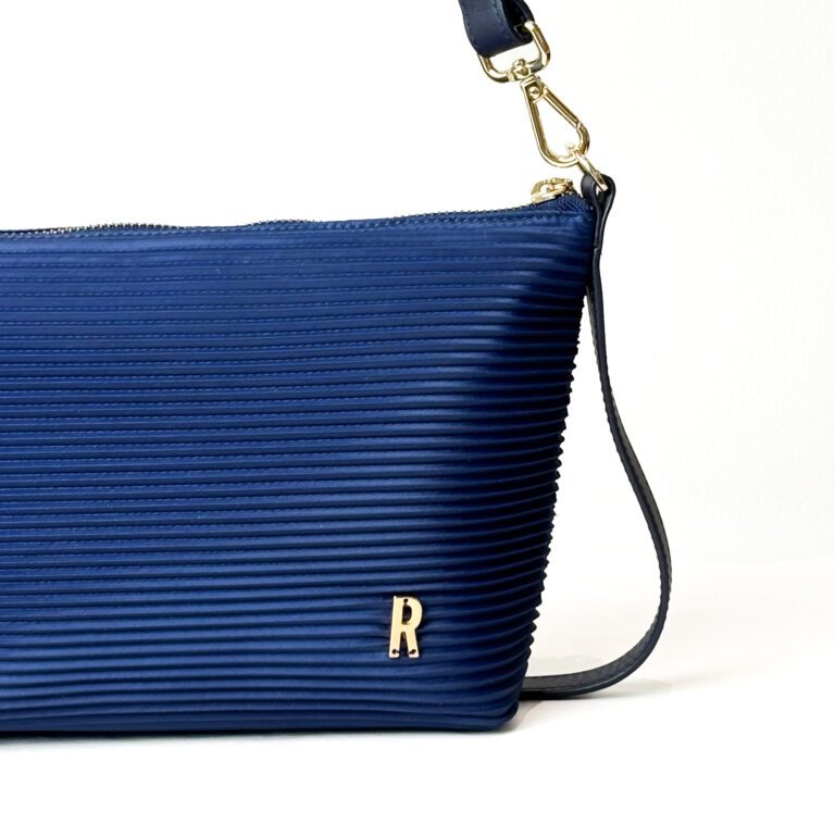Chic Repleat Robin Mini bag crafted in rich Blue Ink with the brand’s signature vertical pleating. Accented with a polished