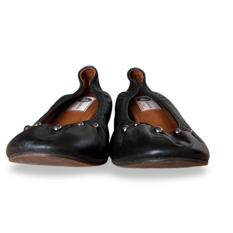 Lanvin Black Leather Ballerina Flats with Pearls – Size 40