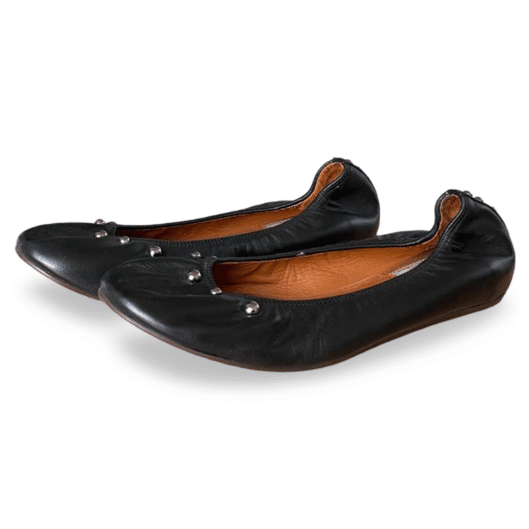 Lanvin Black Leather Ballerina Flats with Pearls – Size 40