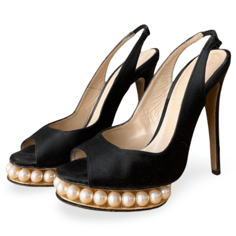 Nicholas Kirkwood Black Satin Peep Toe Slingback Pumps – Size 38