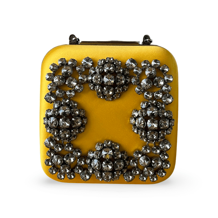 Manolo Blahnik Hangi Yellow Satin Strass Clutch