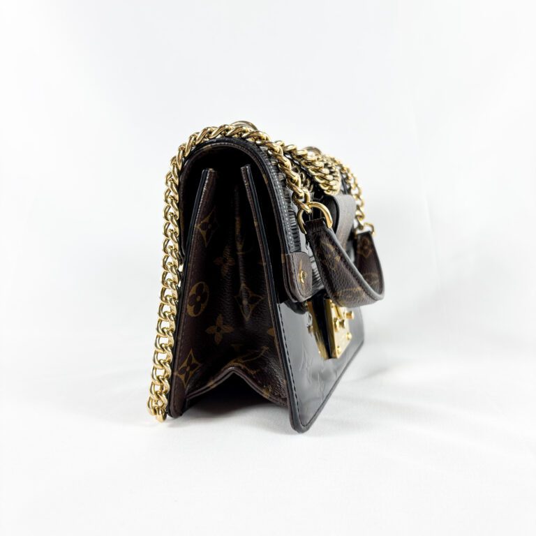 Louis Vuitton Black Patent Leather with Gold-Tone Hardware Chain Louise MM Shoulder Bag