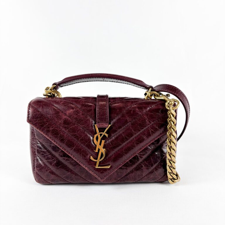 Saint Laurent College Mini Chain Bag in Burgundy Shiny Crackled Leather