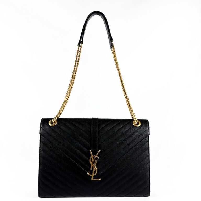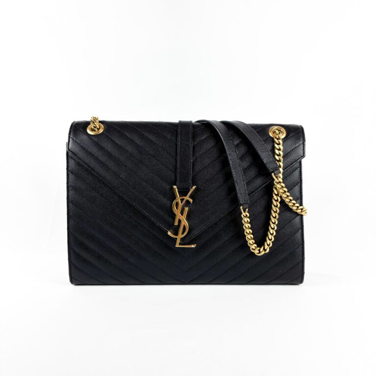 Saint Laurent Large Monogram Envelope Shoulder Bag in Black Chevron-Quilted Grained Leather