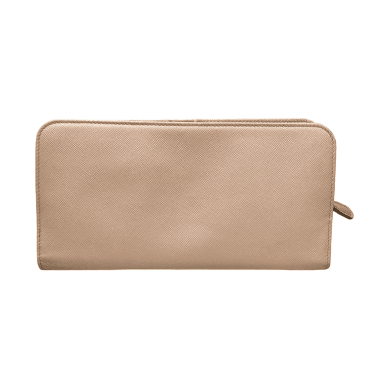 This elegant Prada large wallet is crafted from the brand’s signature Saffiano textured leather in a soft powder pink shade,