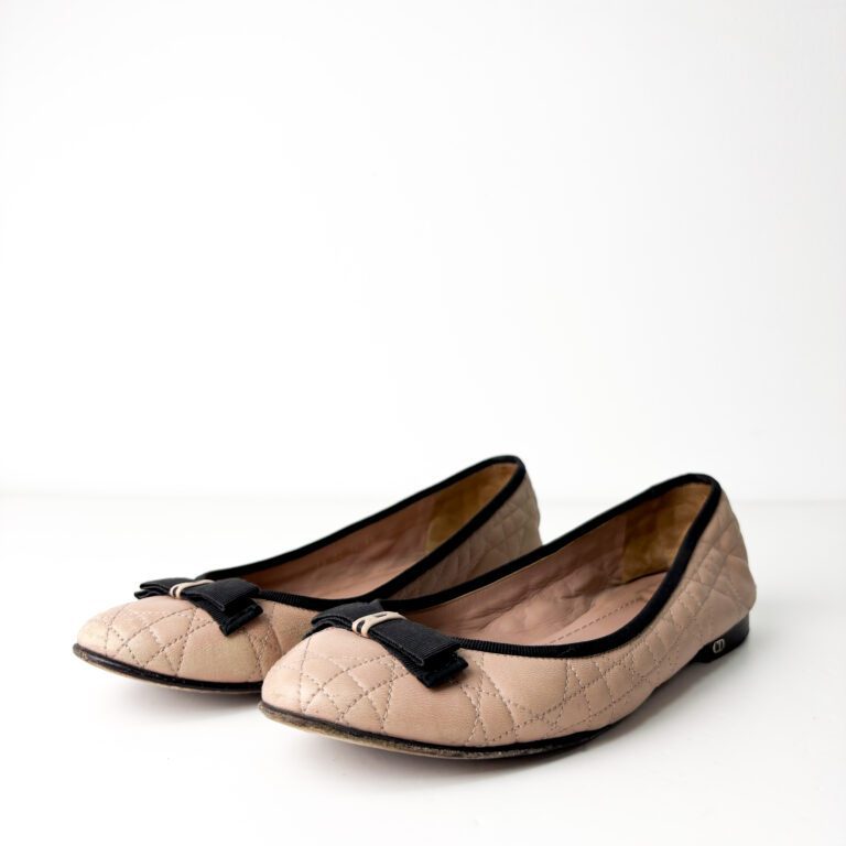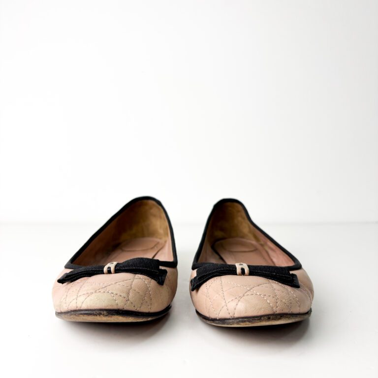 Christian Dior Blush Pink Quilted Cannage Leather with Black Bow My Dior Ballet Flats — Size 40