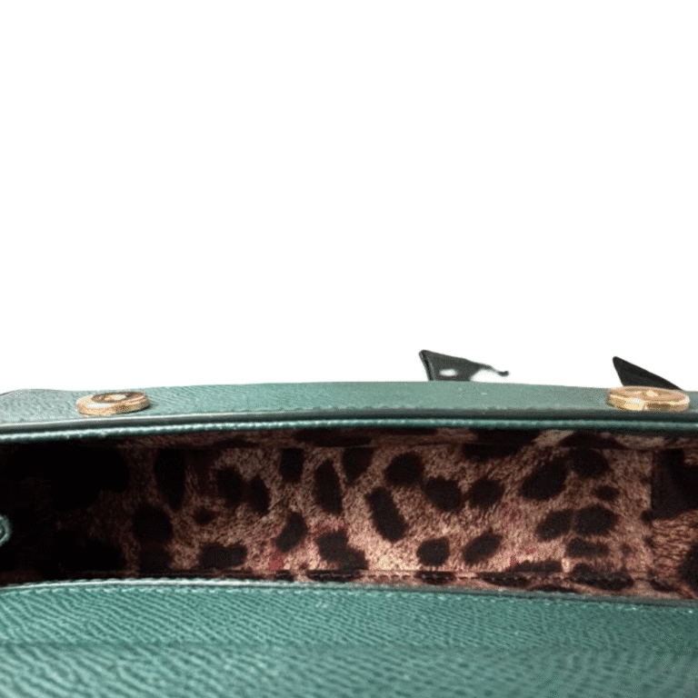 This elegant Dolce & Gabbana Mini Sicily tote bag is crafted from smooth green calf leather, showcasing the brand’s iconic