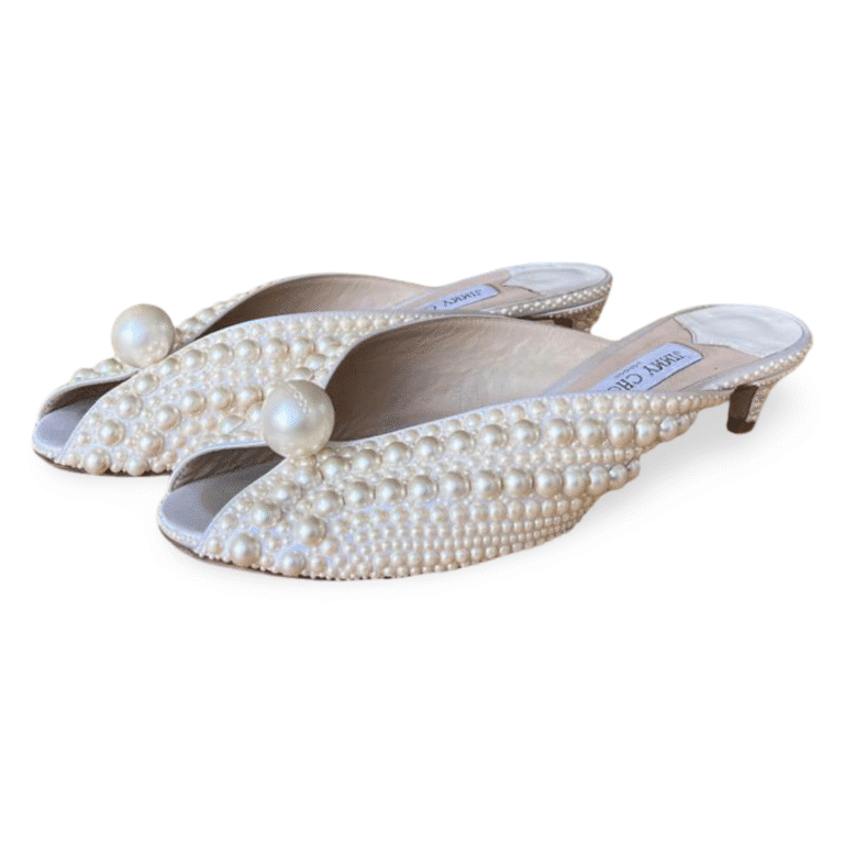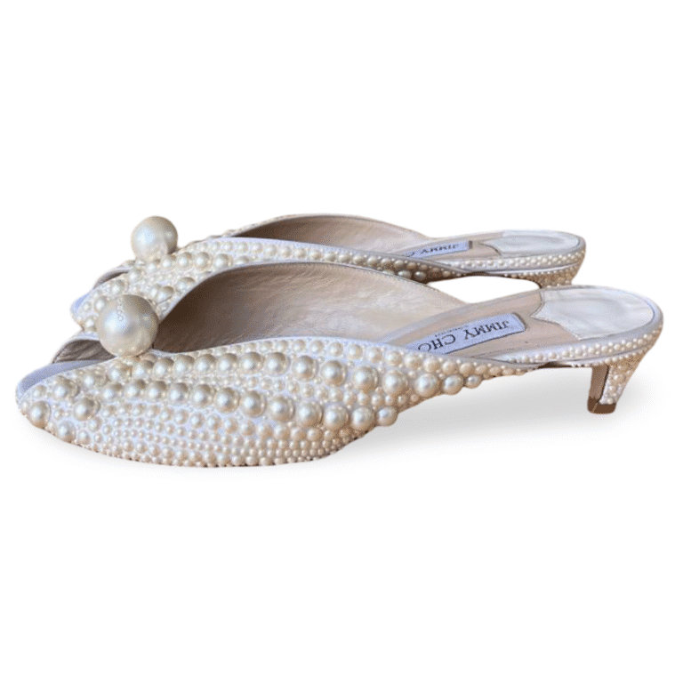 Jimmy Choo Samantha 35 Faux Pearl-Embellished Satin Mules – Size 42