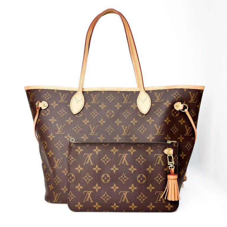 Louis Vuitton Neverfull MM Tote Bag in Monogram Coated Canvas with Natural Cowhide Leather Trim