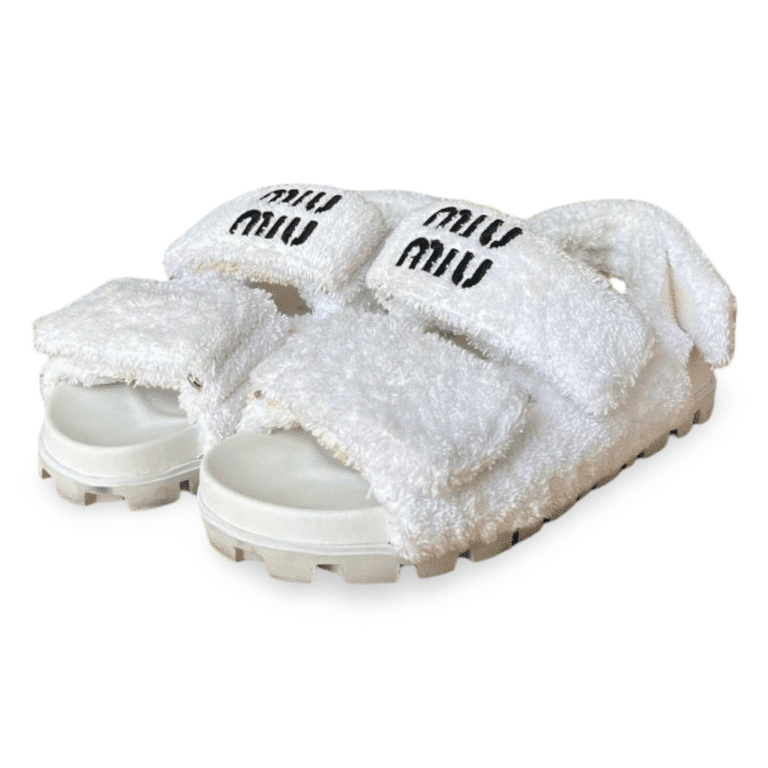 Miu Miu Double Velcro Closure Terry Sandals White – Size 37