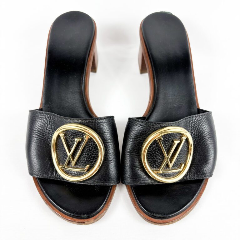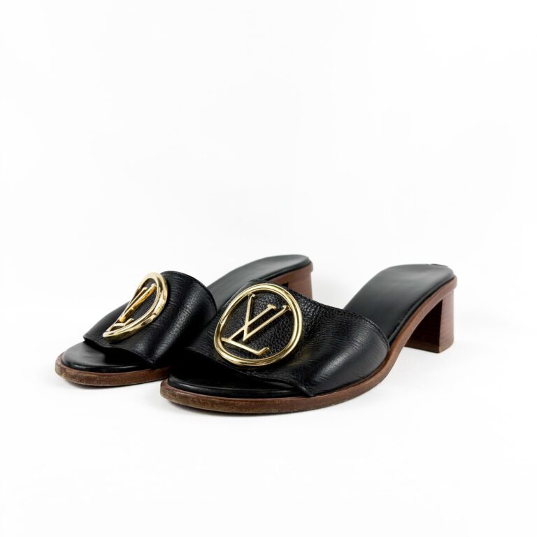 Louis Vuitton Lock It Heeled Mules — Black Leather, Size 38