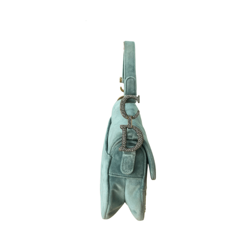 Christian Dior Mini Saddle Bag – Green Suede-Like Velvet with Crystal D Charm