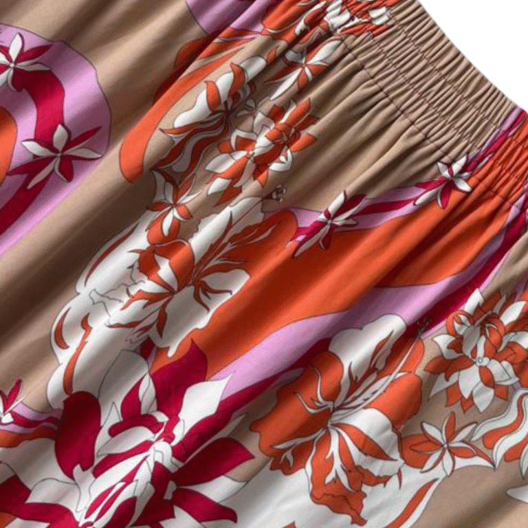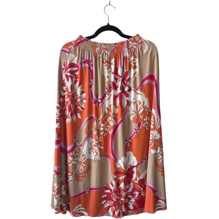 This Emilio Pucci skirt showcases the brand’s signature bold aesthetic with an all-over abstract print in fuchsia, orange, and white