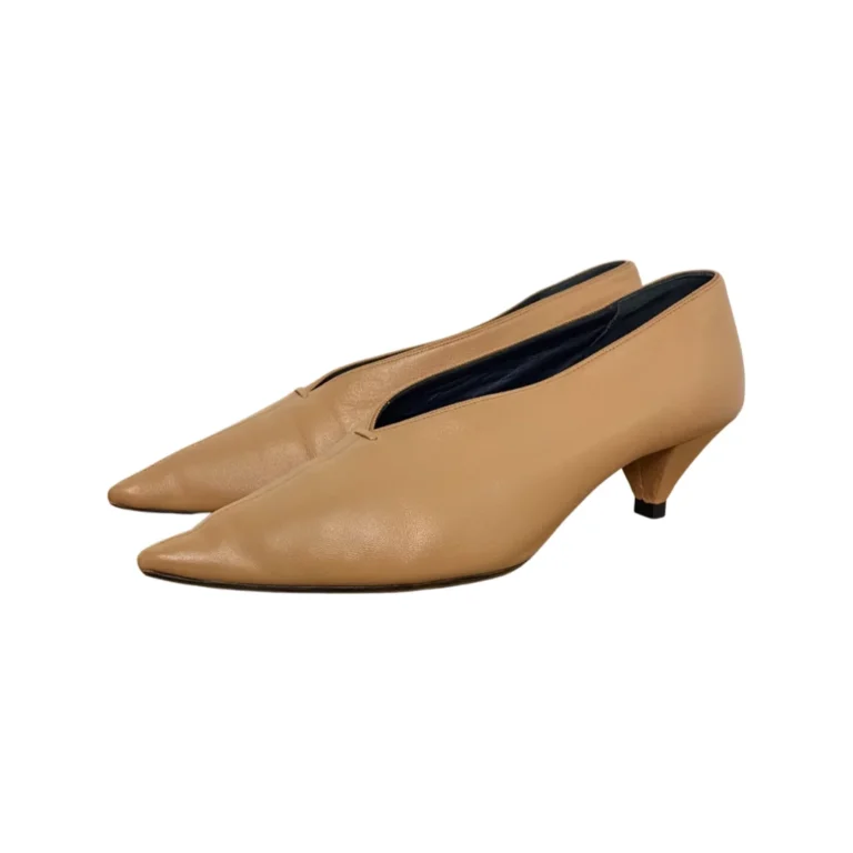 Celine Beige Leather V Neck Pointed Toe Pumps Size 39.5
