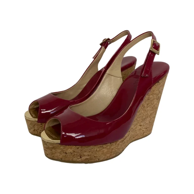 Jimmy Choo Cherry Red Patent Leather Prova Cork Wedge Slingback Sandals Size 36