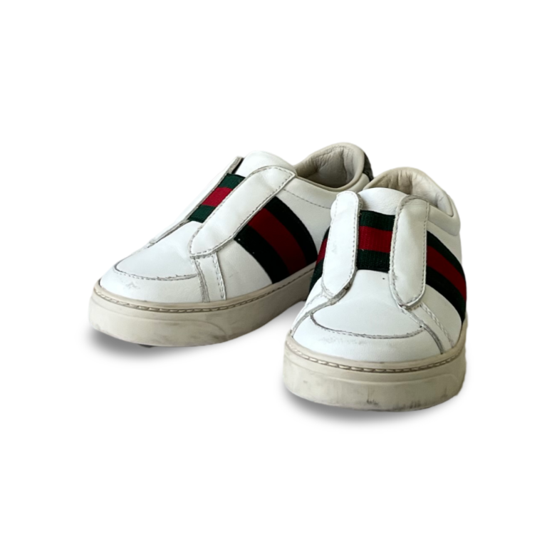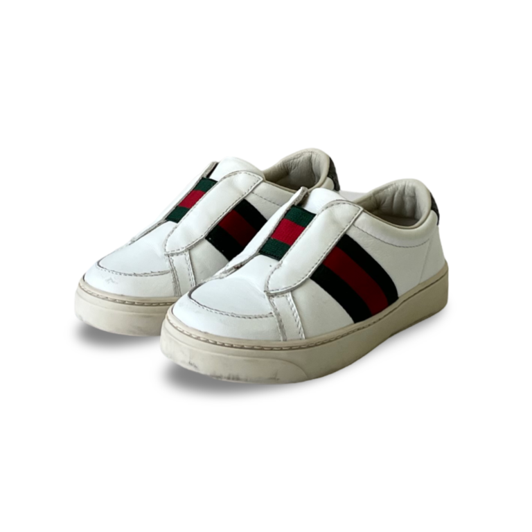 Gucci Kids white leather web ace slip on sneakers Size 24
