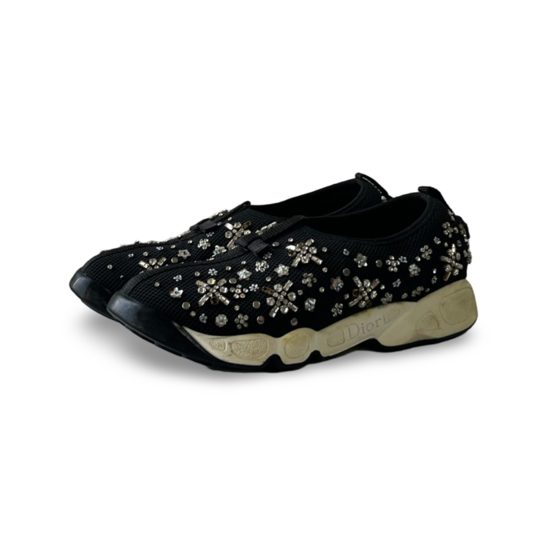Dior Black Mesh Fusion Floral Embellished Slip On Sneakers Size 39