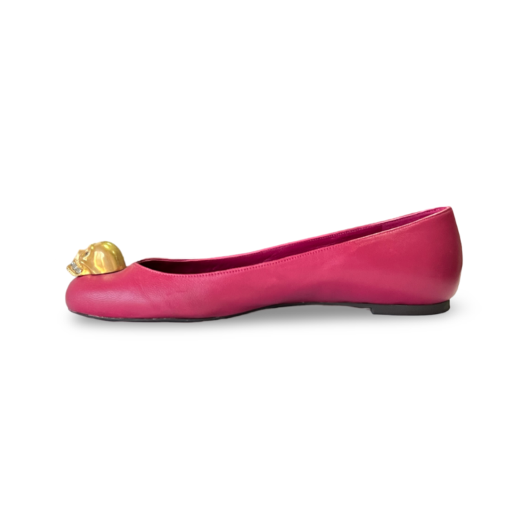 Alexander McQueen Fuchsia Leather Skull Embellished Ballet Flats Size 38