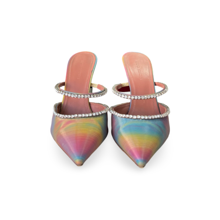 Amina Muaddi Gilda 95 Mules in Holographic Leather