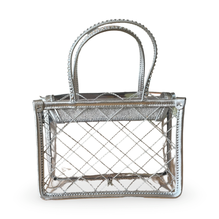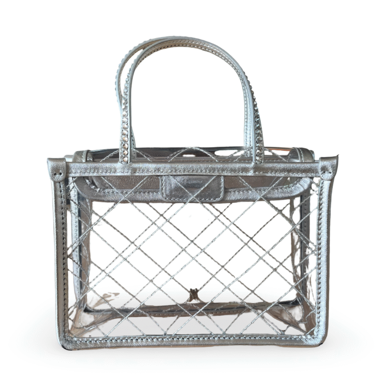 Amina Muaddi Mini Amini Betty Quilted Transparent PVC Crystal Top-Handle Bag