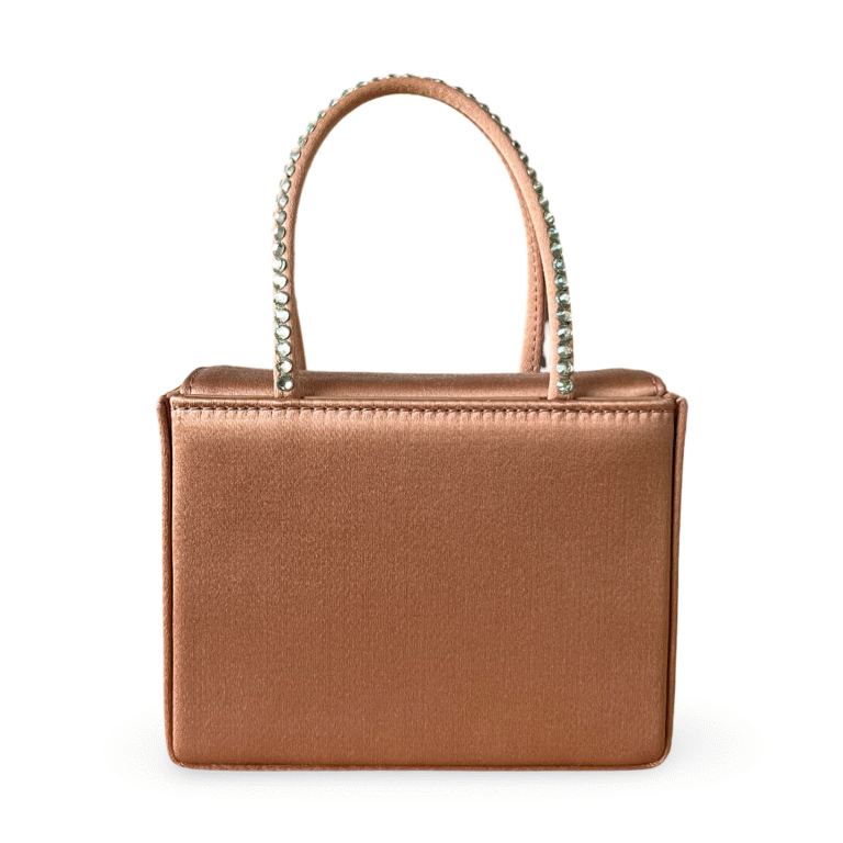 Amina Muaddi Mini Superamini Gilda Satin Nude Bag with Chrysolite Crystals