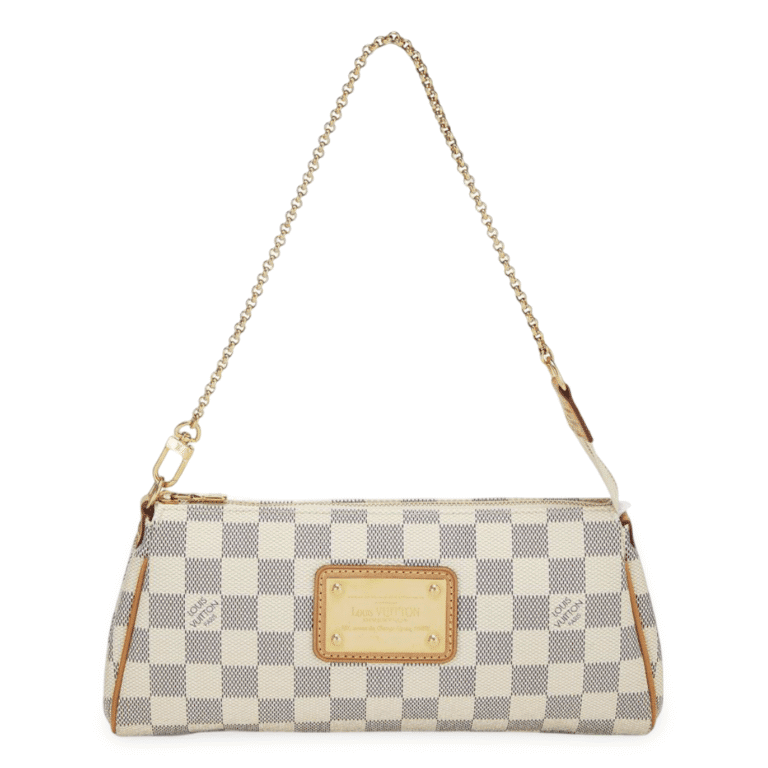 The Louis Vuitton Damier Azur Eva Clutch is a versatile and stylish accessory, perfect for both day and evening wear.