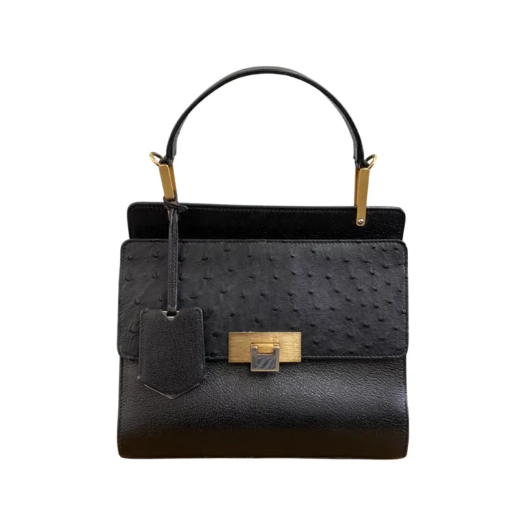Balenciaga Black Leather and Ostrich Le Dix Cartable Small Top Handle Bag