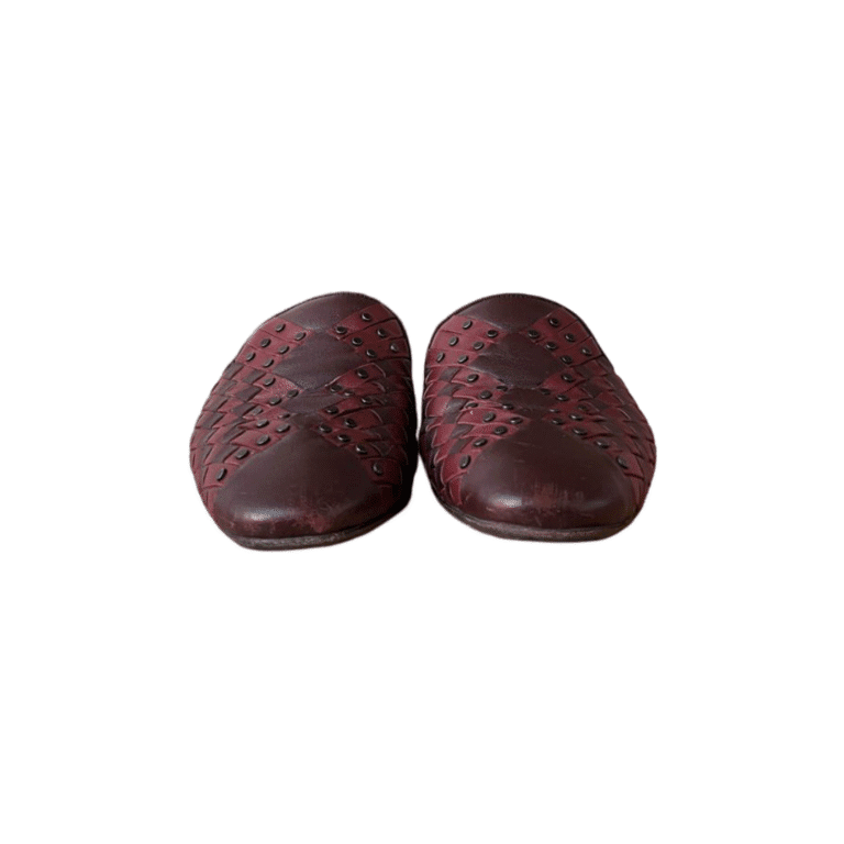 Bottega Veneta Burgundy Intrecciato Leather Fiandra Flat Mules Size 37