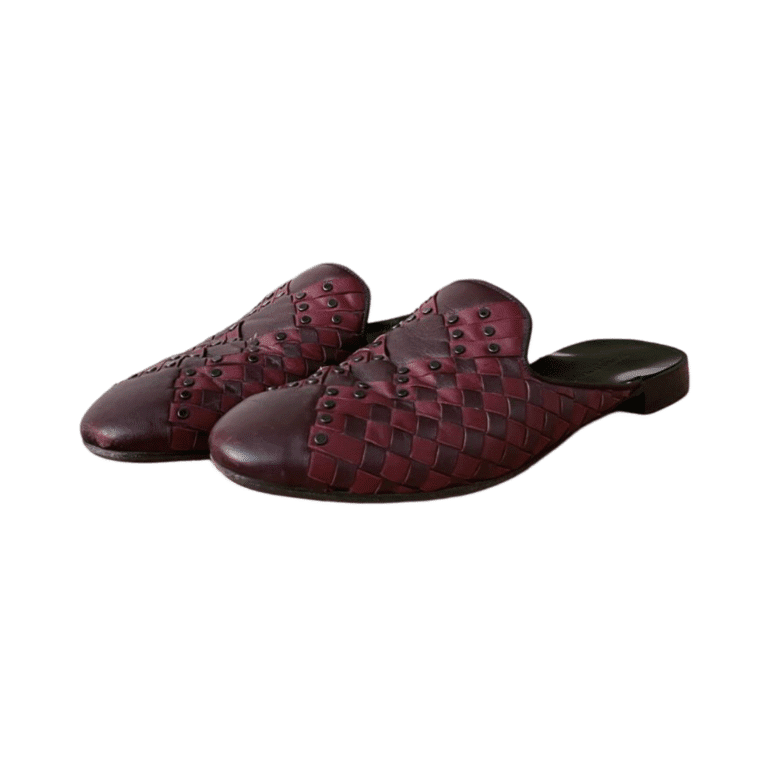 Bottega Veneta Burgundy Intrecciato Leather Fiandra Flat Mules Size 37