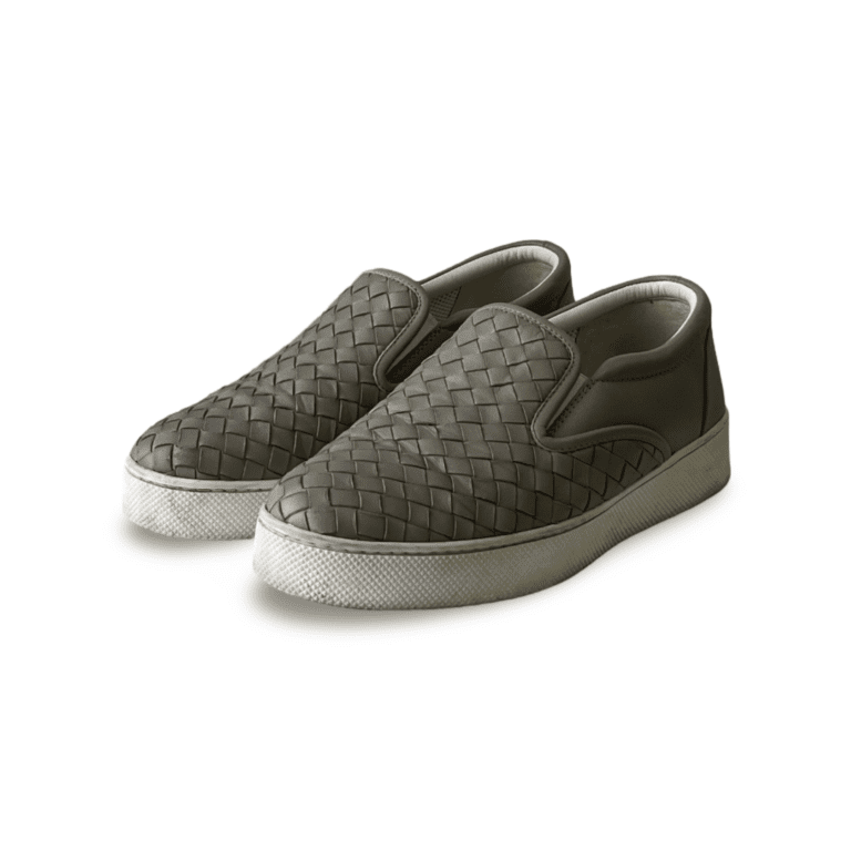 Bottega Veneta Grey Intrecciato Suede Slip-On Sneakers