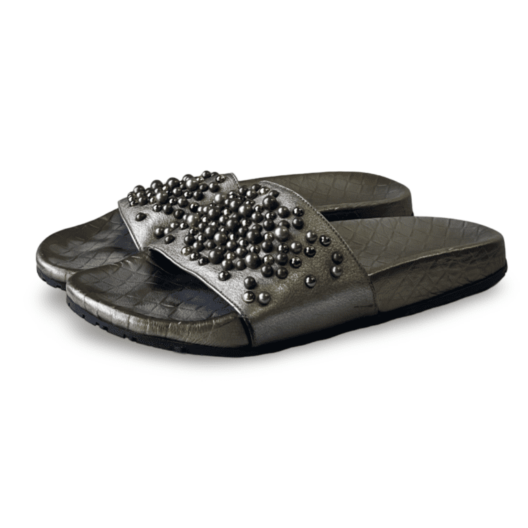 Bottega Veneta Dark-Green Embellished Leather Slides