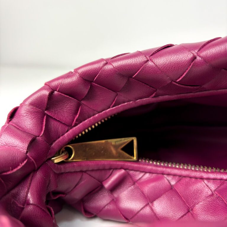 Bottega Veneta Magenta Intrecciato Lambskin with Gold-Tone Hardware Mini Jodie Bag