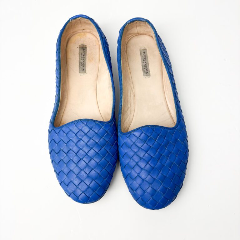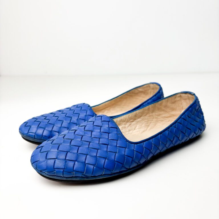 Bottega Veneta Blue Intrecciato Woven Loafers Size 36.5