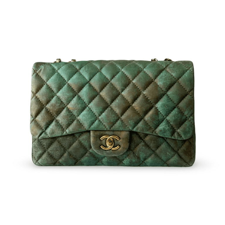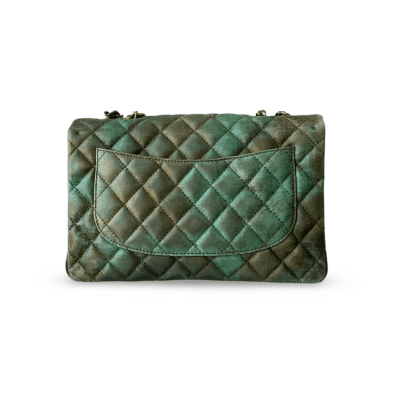 Chanel Green & Bronze Quilted Calfskin Half Flap Jumbo Bag
