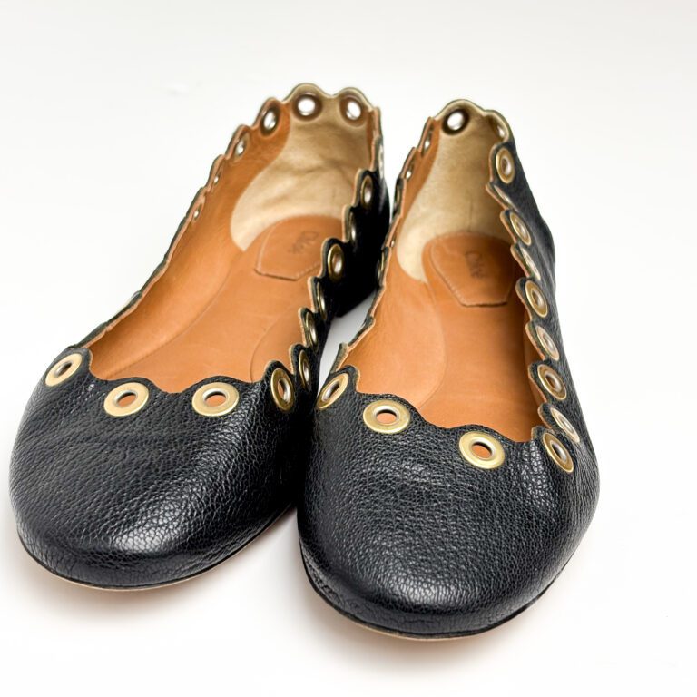 Chloe Black Leather Lauren Ballet Flats Size 36.5
