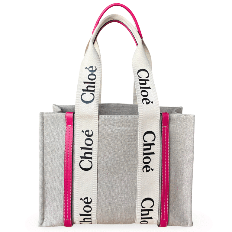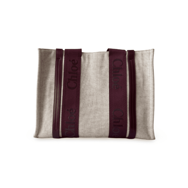 Chloé Beige/Burgundy Canvas and Leather Medium Woody Tote Bag