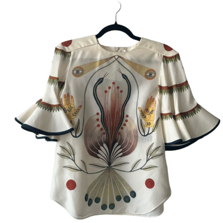 Chloé Buttercream Printed Ruffled-Sleeve Top – Size 40