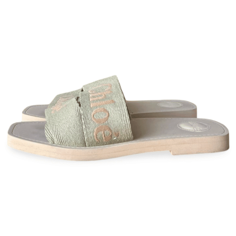 Chloé Woody Slides in Monochrome Linen – Size 40