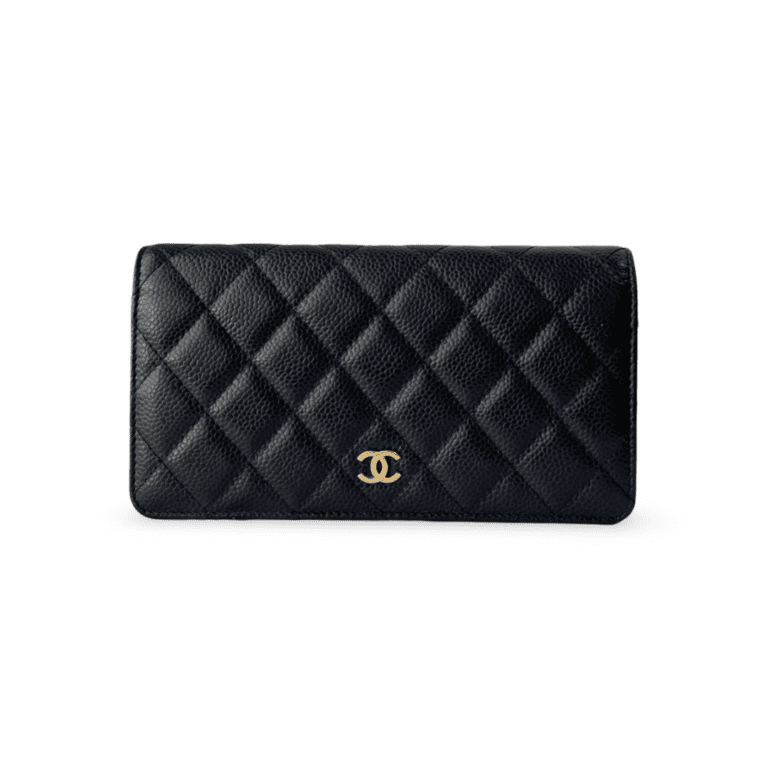 Chanel Black Quilted Caviar Leather L Yen Continental Wallet