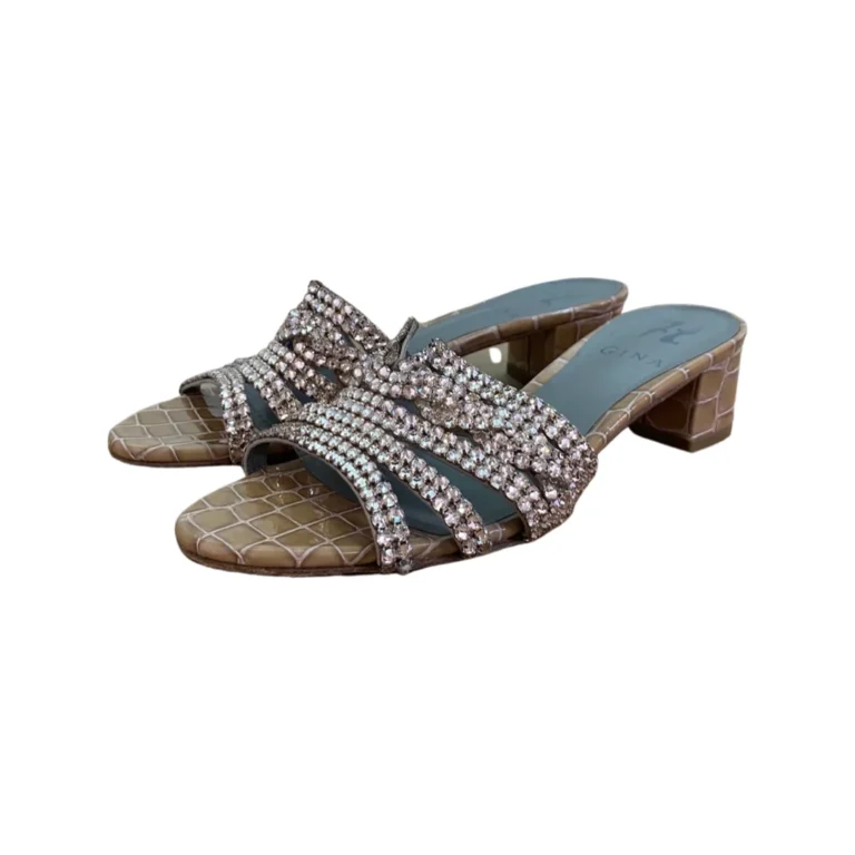 Gina Yellow Croc Leather Crystal Embellished Mule Size 38