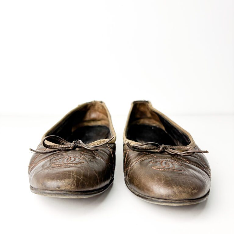Chanel Dark Brown Quilted Leather CC Bow Ballet Flats — Size 40